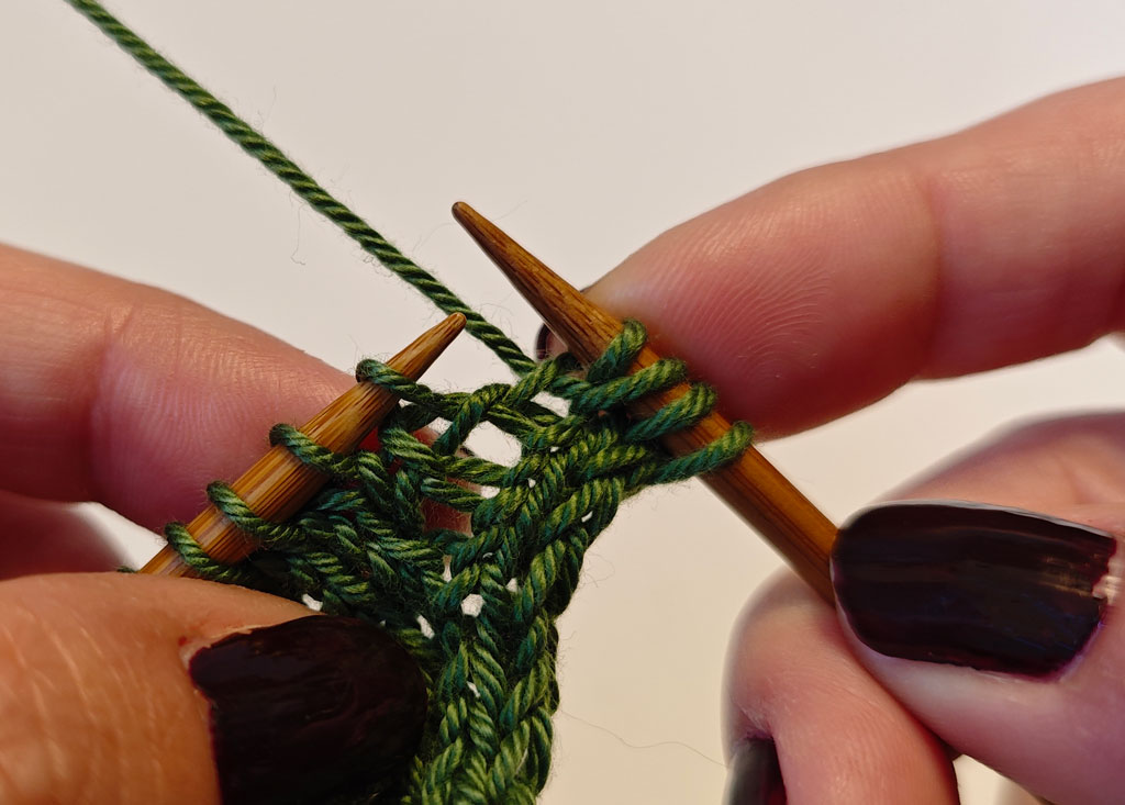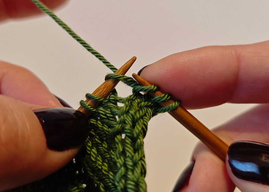 01: Ispletite jednu petlju krivo, ali ne skidajte petlju sa leve igle.
