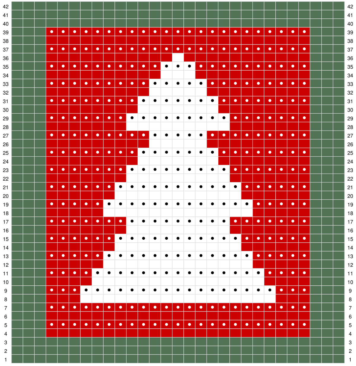 Centralni deo: Ostatak kvadrata je rađen u glatkom bodu, što dodatno naglašava kontrast između boja i motiv jelke.