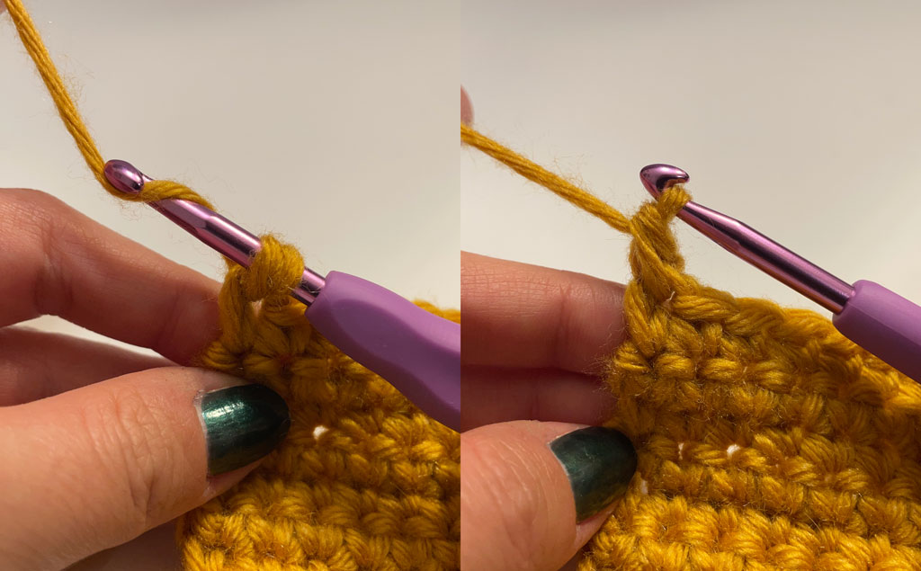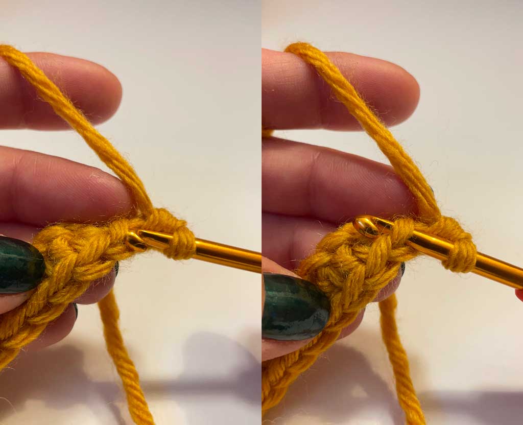 02: Opet zahvatite predivo i provucite ga kroz obe petlje na heklici.