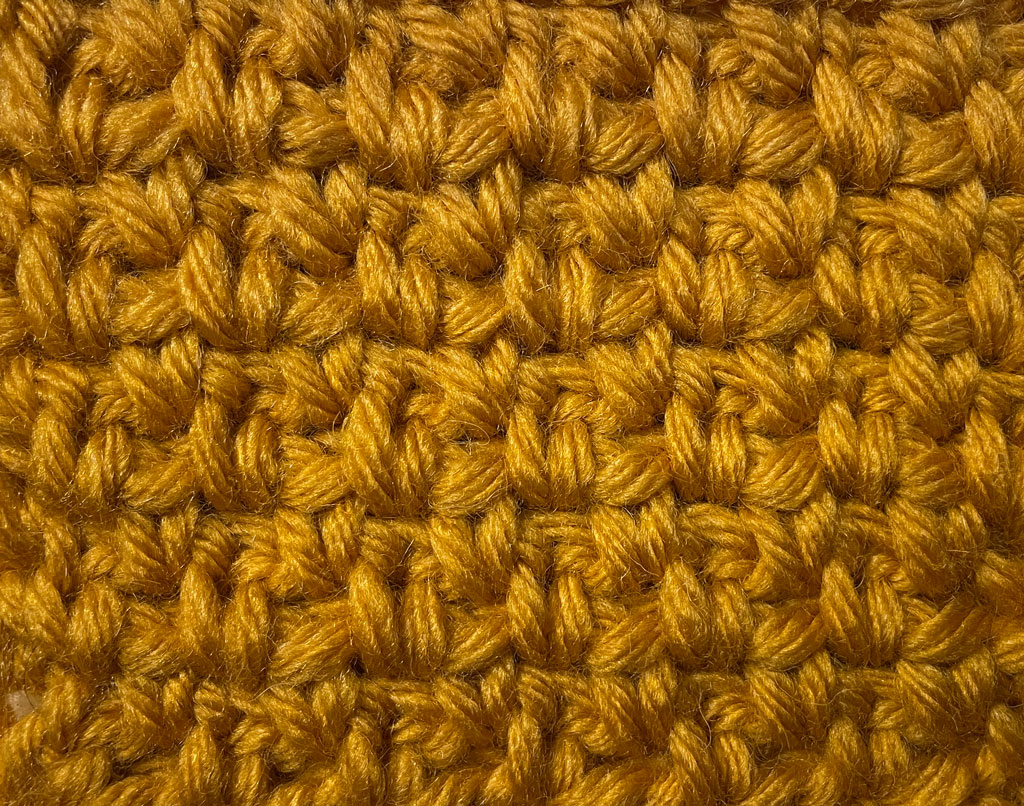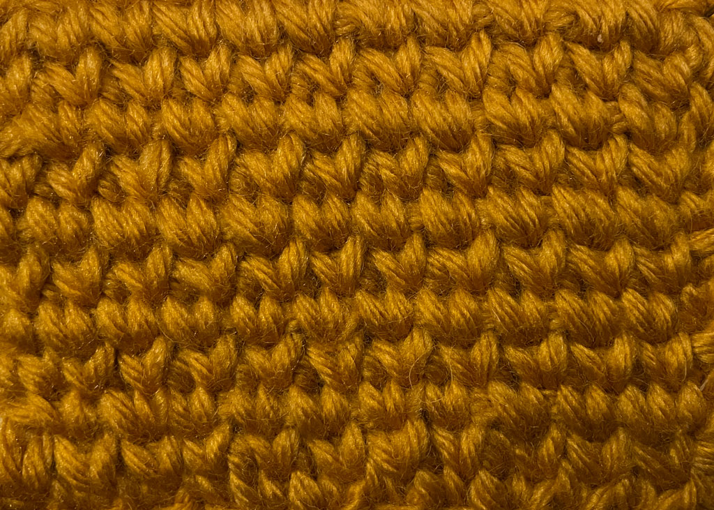 Mahovina bod kombinuje niski stubić i lančić, stvarajući laganu, ravnomernu i vizuelno bogatu teksturu. Iako tehnički jednostavan, ovaj bod daje sofisticiran izgled i često se koristi za ćebad, šalove i letnje komade.