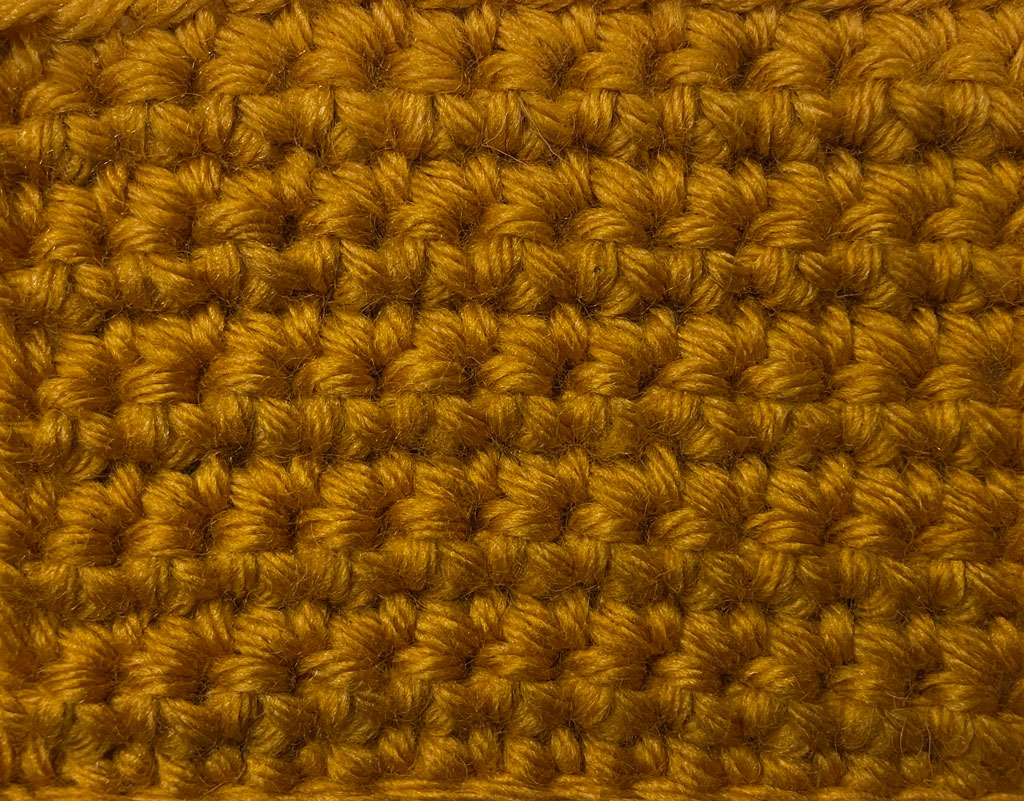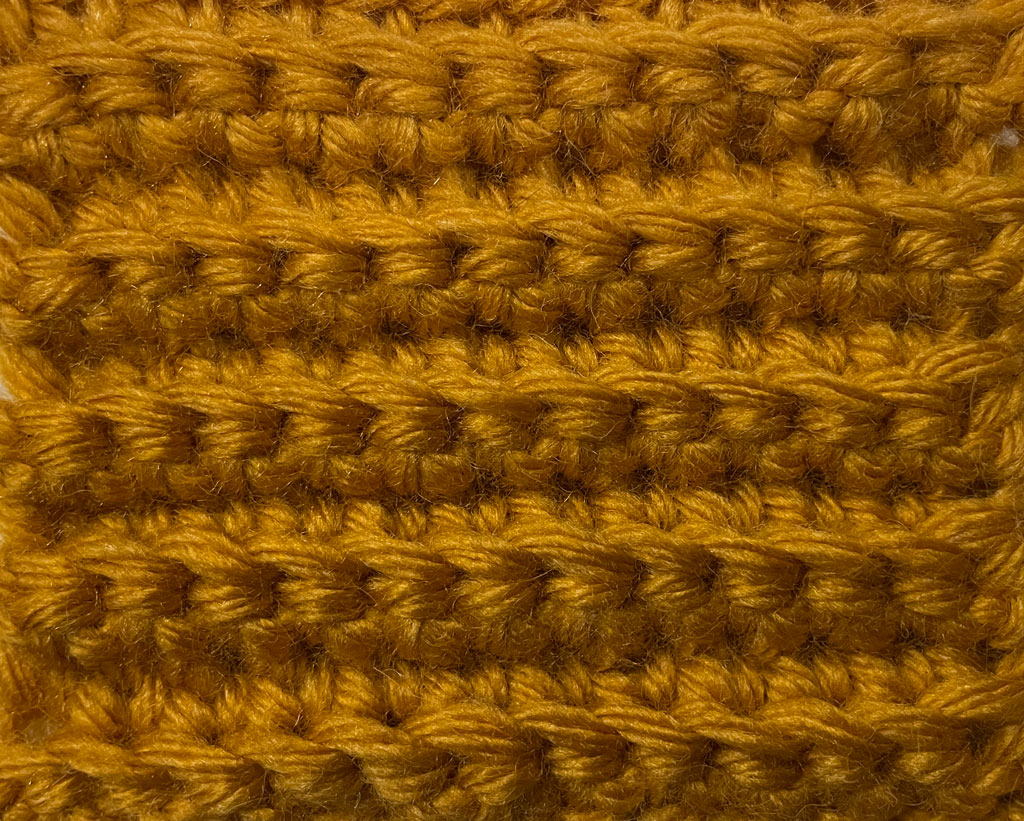 Niski stubić kroz centar se ubada u „telo“ prethodnog stubića, a ne ispod niti. Rezultat je gusto, ravnomerno pletivo koje podseća na pletene bodove i često se koristi za kape, rukavice i torbe.