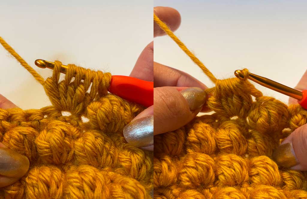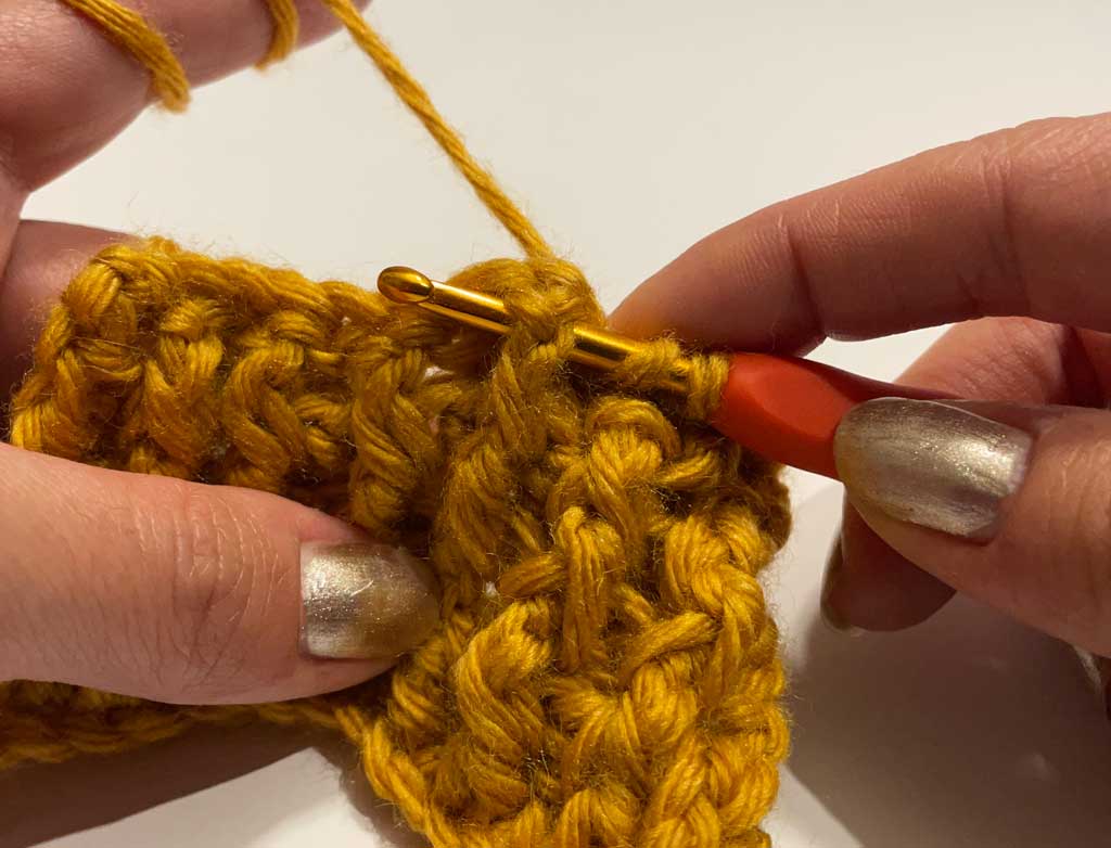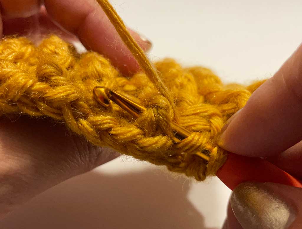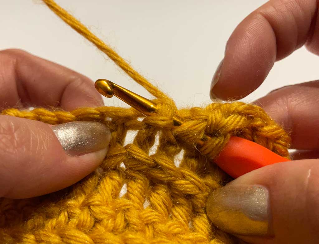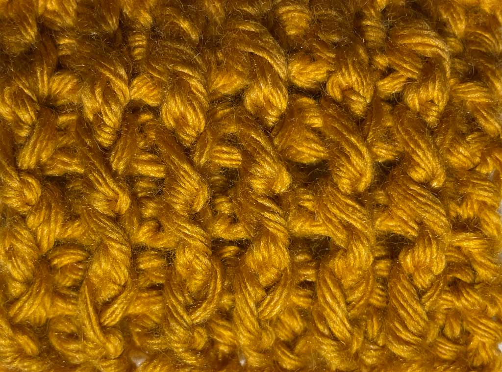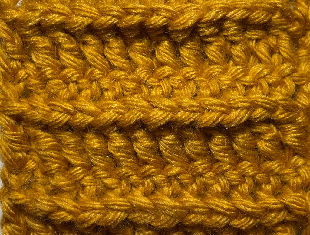 Sada se kukica ne uvodi u vrh petlje kao kod standardnog stubića sa jednim navijutkom, već oko vertikalnog dela stubića. Naizmenično ubacujete heklicu sa prednje i sa zadnje strane stubica, a zatim radite stubić na uobičajen način.