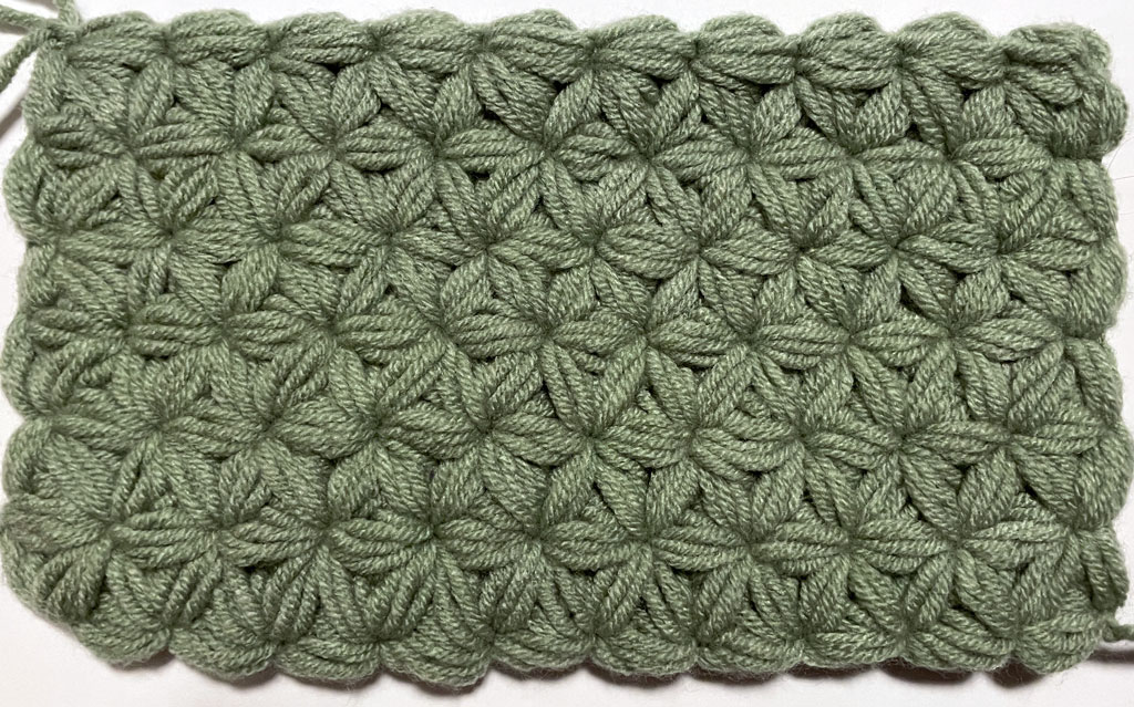Na kraju reda radite običan stubić u vrh okretnog lančića. Nastavite sa naizmeničnim radom, vodeći računa da u svakom redu isti stubići ostanu istureni, a isti povučeni.